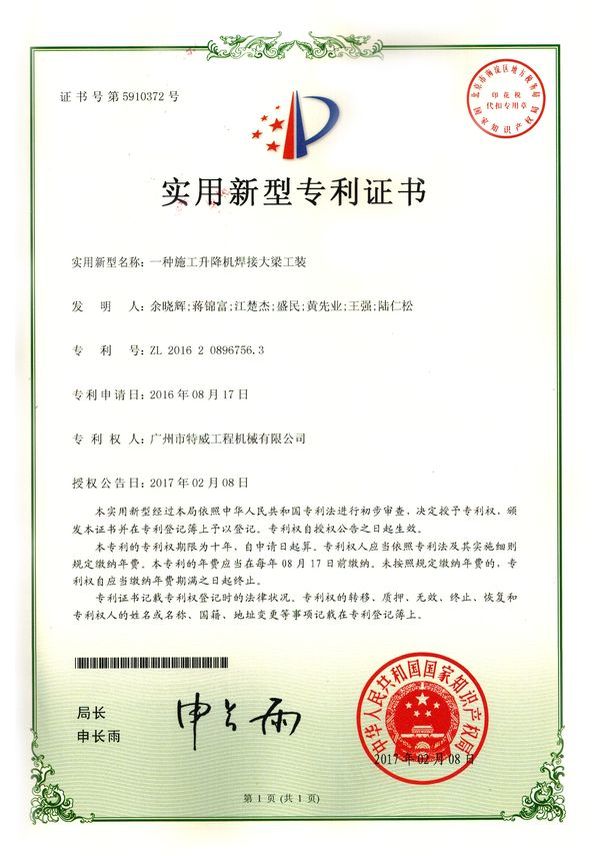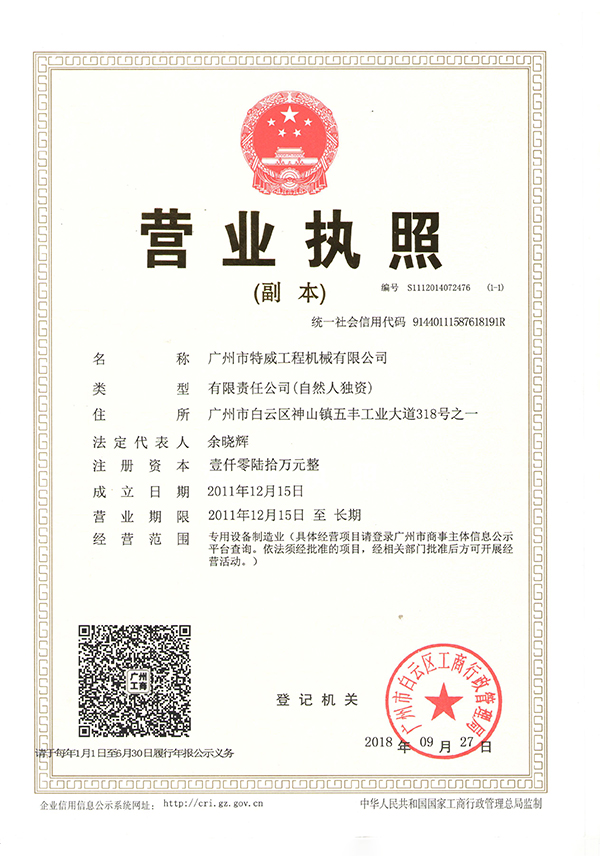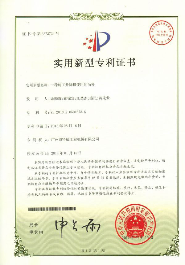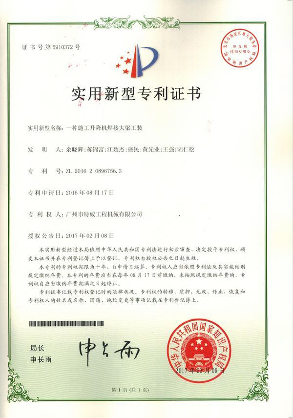 廣州市特威工程機(jī)械有限公司地處廣州市白云區(qū)神山鎮(zhèn),廣清高速神山出口附近,是一家施工升降機(jī)的專業(yè)生產(chǎn)廠家。公司成立于2011年,占地100000多平方米,注冊(cè)資金1060萬(wàn)元,現(xiàn)有員工300余人其中工程技術(shù)人員33人,高級(jí)技術(shù)人員52人。